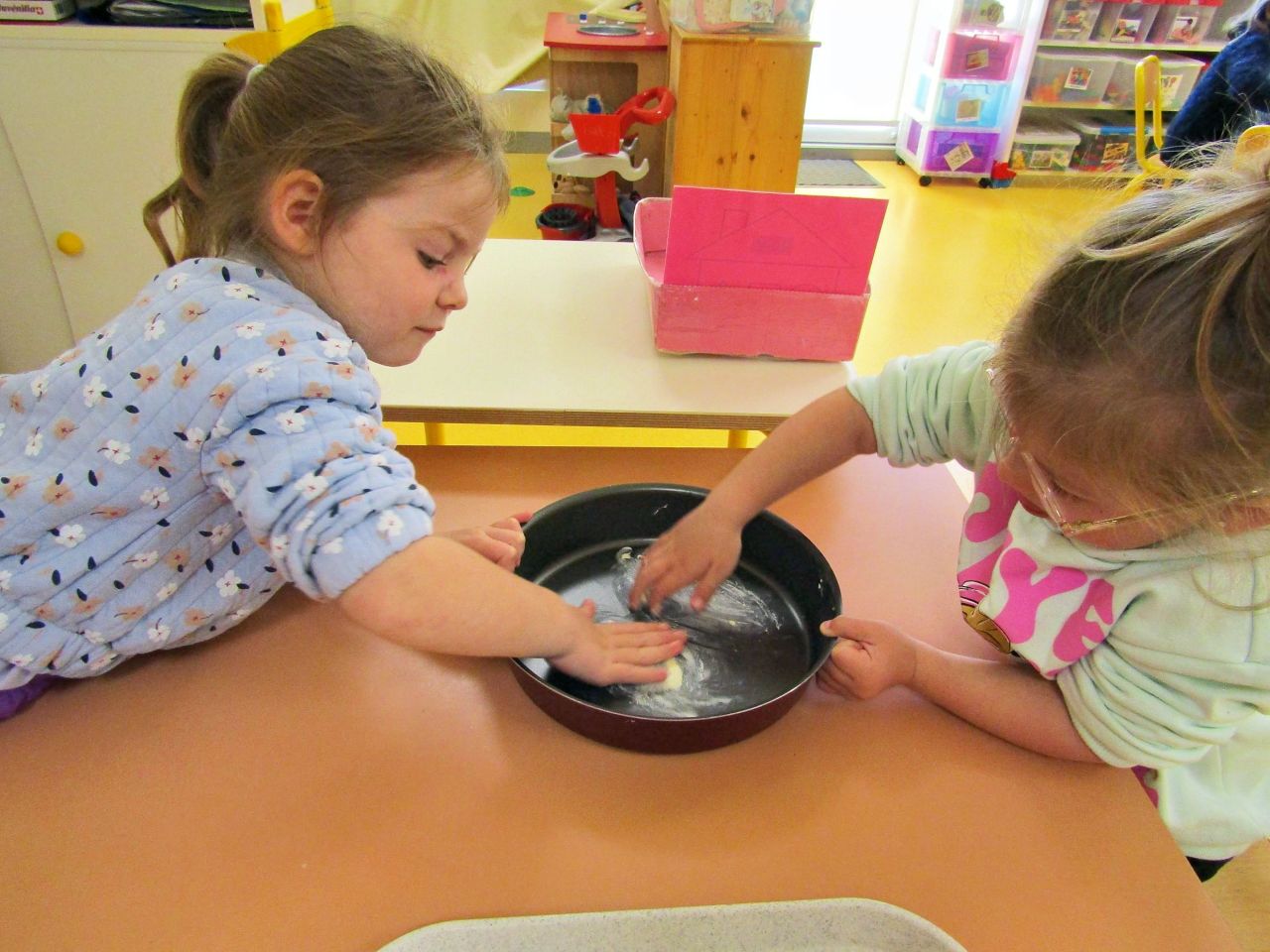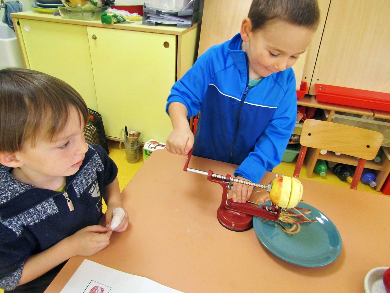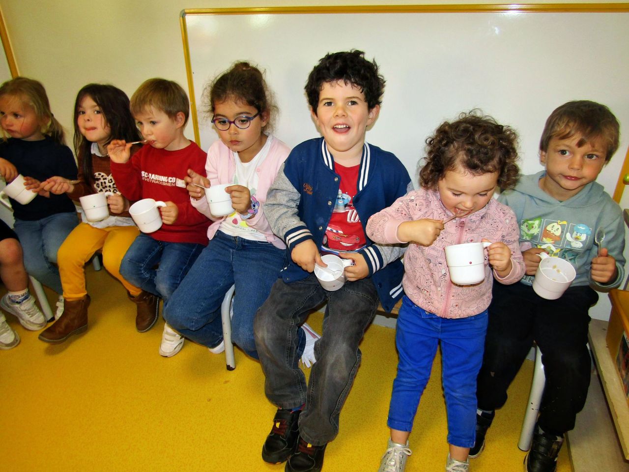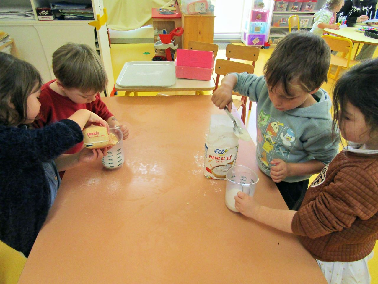 Dans le cadre de la semaine du goût, les élèves de maternelle bilingue ont cuisiné: ils ont préparé (et dégusté!) deux crumbles: un pomme-cannelle, un pomme-banane. Voici la recette et quelques photos. Menam, menam!